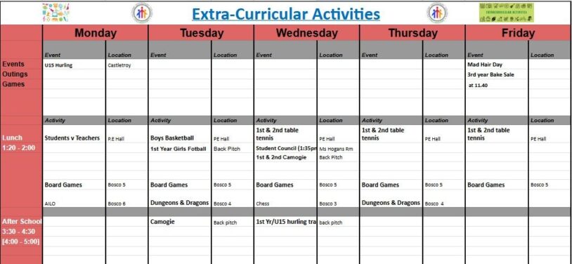 Please see attached Extra Curricular activities for Week Commencing 8th December 2025
