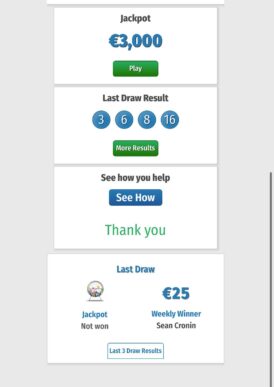 Congratulations to last nights lucky dip winner Sean Cronin. Alas, the jackpot of €3,000!!! is still up for grabs! With the lotto coming...
