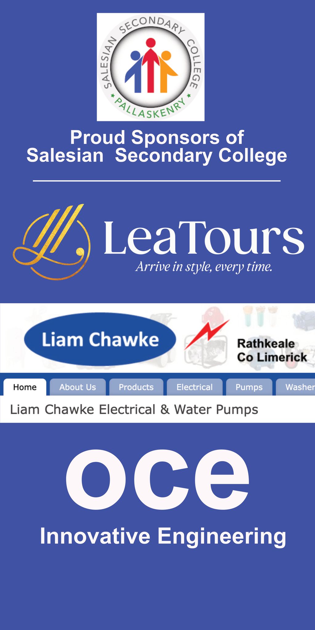 Kirby Engineering and Construction, Kerry Agri, Deel Bakery, 061 Bakery Kildimo, EMC Accounts, Lea Tours, D&M Garden Centre, Safe Aid Training, Downeys Electrical Services, Mid West Tyres, MT Mackessy Business, Munster Radon, OCE Kildimo, Pro Clad Insulation, Matt Kelly Productions, Chawks Electrical in Rathkeale, C Design, DTops in NCW, Irish Cement, Heating Engineering Supplies, Samco Agri Sales, Sysco, Crecora Mills, Brian Geary Motors, Cois Sionna Desmond Credit Union and Limerick Race Course. We are also very grateful to those sponsors who have chosen to remain anonymous.